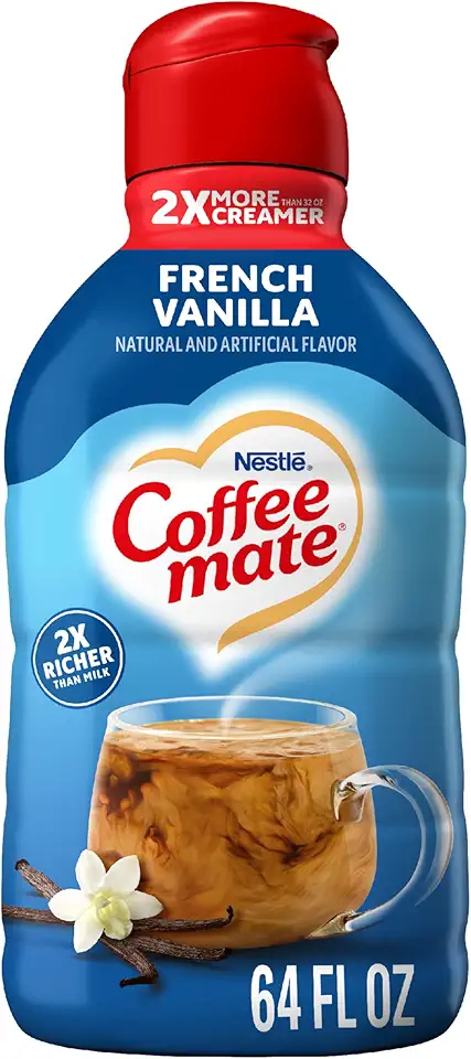 Products French Vanilla Flavored Coffee Creamer, Liquid, 126 Servings Coffee mate French Vanilla Liquid Creamer (126 servings, ~40 oz, 3 lbs). Sweet vanilla flavor, non-dairy, cholesterol-free. 1-year warranty. Shop Now Coffee Mate Original Coffee Powder 12x6oz Coffee mate Original Powder (12 x 6 oz, 5 lbs total). Pre-portioned, non-dairy, easy storage. Great for sharing or travel. 1-year warranty. Shop Now Coffee Creamer, Non-Dairy, Gluten-Free, Liquid, 63 Servings Coffee mate Liquid Creamer (63 servings, ~20 oz, 2 lbs). Rich & creamy, cholesterol-free, everyday use. 1-year warranty. Shop Now